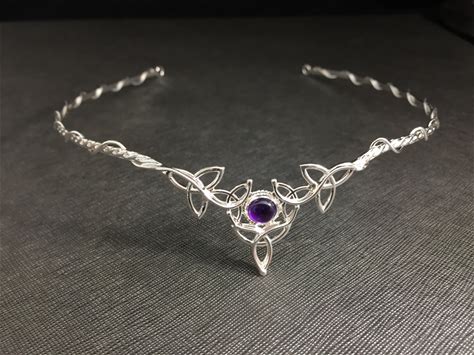 Celtic Knot Bridal Circlet With Gemstone Choice, Sterling Silver Irish Wedding Headpiece, Fantasy Wedding