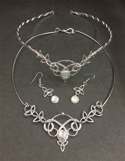 Renaissance Wedding Celtic Tiara, Neck Ring, Trinity Knot Earrings, Bridal Accessory Wedding Jewelry Set, Gifts For Her