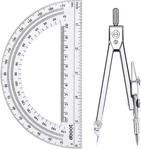 Geometric Drawing Tools: Ruler, Protractor, and Com